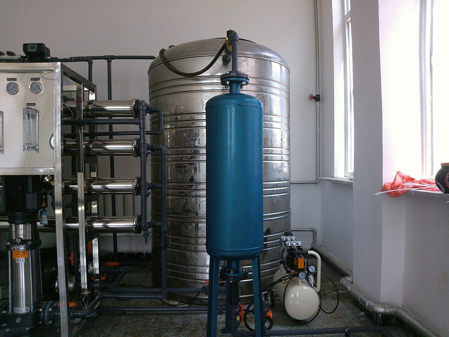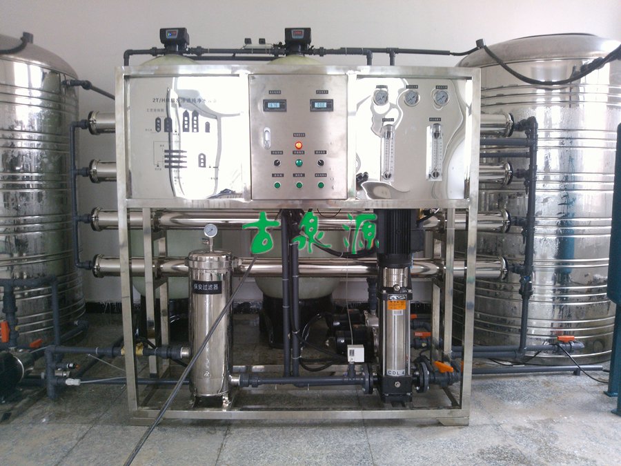 該項(xiàng)目現(xiàn)場位于遼寧省阜新市,原水為深井地下水,出水水質(zhì)要求達(dá)到飲用水標(biāo)準(zhǔn),用來給學(xué)生們食堂做飯及飲用。我們給設(shè)計(jì)研制了一套產(chǎn)水量為2T/h的反滲透設(shè)備,采用了4組8040的白鋼膜殼配上8支陶氏4040的反滲透膜,產(chǎn)水量達(dá)到2T/h。在出水端,配備了2-40的南方臥式泵兩臺(一備一用),采用變頻恒壓供水系統(tǒng)進(jìn)行控制,以保證用水端的水壓恒定水量充足。