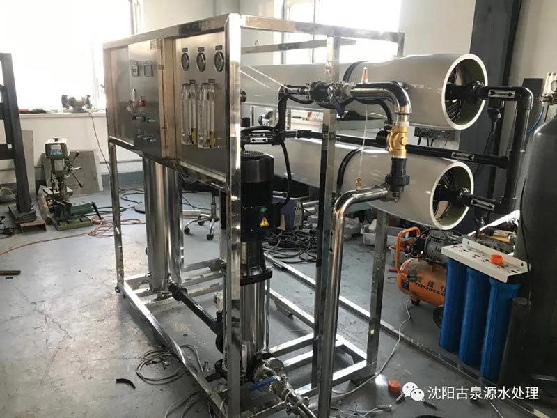 反滲透是最精密的膜法液體分離技術(shù),在進(jìn)水(濃溶液)側(cè)施加操作壓力以克服自然滲透壓,當(dāng)高于自然滲透壓的操作壓力離加于濃溶液側(cè)時(shí)水分子自然滲透的流動(dòng)方向就會(huì)逆轉(zhuǎn),進(jìn)水(濃溶液)中的水分子部份通過反滲透膜成為稀溶液側(cè)的凈化產(chǎn)水;反滲透設(shè)備能阻擋所有溶解性鹽及分子量大于100的有機(jī)物,但允許水分子透過,反滲透復(fù)合膜脫鹽率一般大于98%,它們廣泛用于工業(yè)純水及電子超純水制備,飲用純凈水生產(chǎn),鍋爐給水等過程,在離子交換前使用反滲透設(shè)備可大幅度降底操作用水和廢水的排放量。