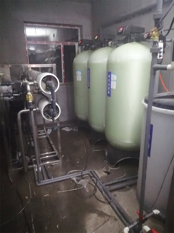 » 遼寧省遼源某性炭廠4噸反滲透設(shè)備(加2噸白鋼組合水箱)